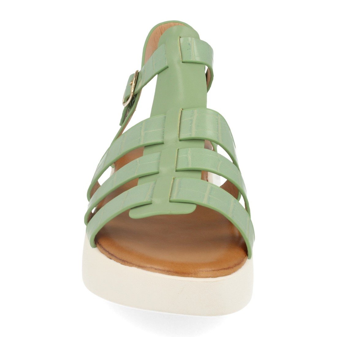 Sandalia Plana para Mujer, con Pala Estilo Cangrejera, Talon Abierto, Puntera Abierta, y Cierre de Hebilla Primavera Verano 2020