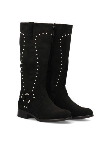 Bota cowboy con caña alta y tachuelas para mujer. Tacón medio y cómodo.