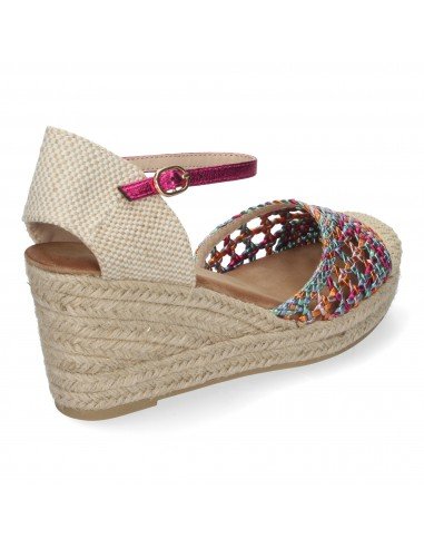 Sandalia de Cuña para Mujer, Cómodas y Elegantes, Forrada de Yute, con Pala Calada, y Cierre de Hebilla.