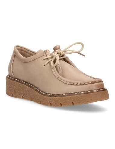 Zapato tipo mocasín con cuña y cordones para mujer. Diseño cerrado y suela gruesa. Ideal otoño invierno.