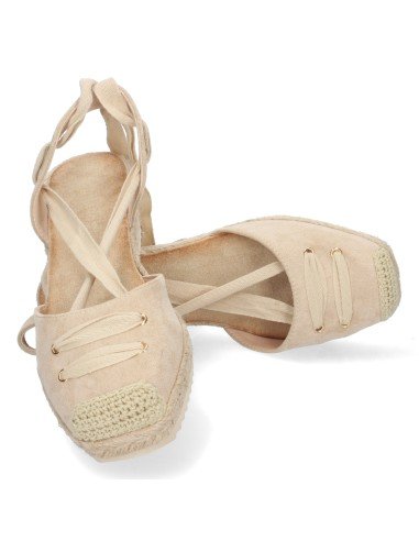 Sandalia de Cuña para Mujer, Forrada de Yute, con Pala Cerrada, y Cierre de Cordones, Primavera Verano 2022
