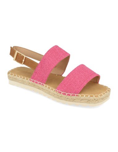 Sandalia Plana de Mujer, con Yute, y Pala de Rafia, Cierre de Hebilla en el Tobillo, Primavera Verano 2021