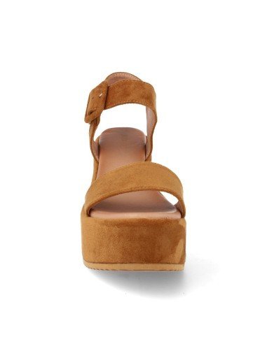 Sandalia de plataforma con pala simple y cierre de hebilla en el tobillo.