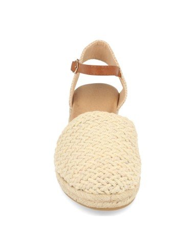 Sandalia para Mujer con Cuña de Yute, Pala Cerrada de Rafia, Talon Abierto y Cierre de Hebilla Primavera Verano 2023
