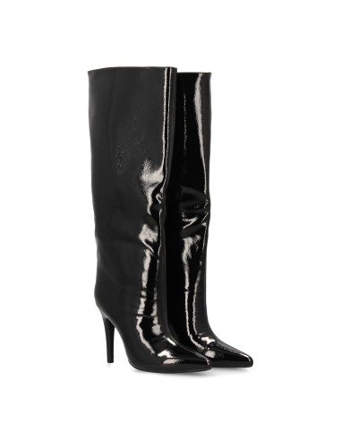 Bota de tacón para mujer estampado liso con caña arrugada, cierre de cremallera, temporada otoño invierno 2023