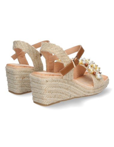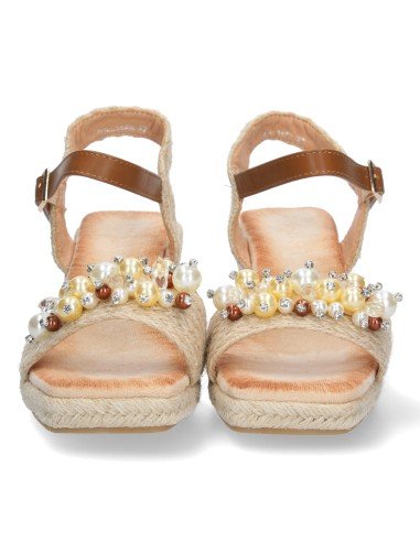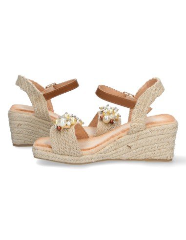 Sandalia de Cuña para Mujer, Comodo, Forrado de Yute, con Bolitas Brillantes en la Pala, y Cierre de Hebilla, Primavera Verano 2023