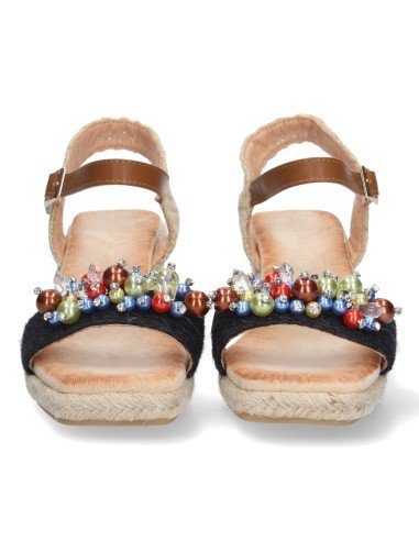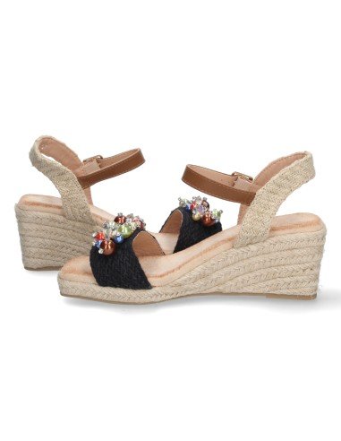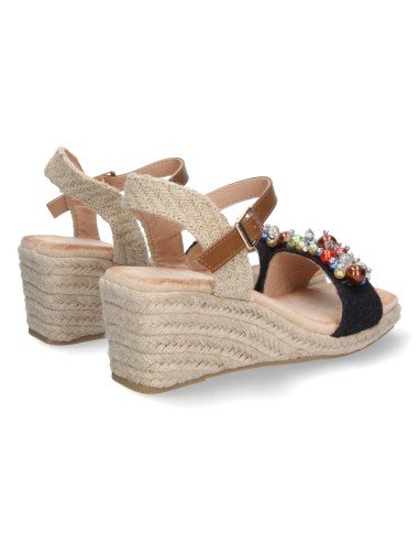 Sandalia de Cuña para Mujer, Comodo, Forrado de Yute, con Bolitas Brillantes en la Pala, y Cierre de Hebilla, Primavera Verano 2023
