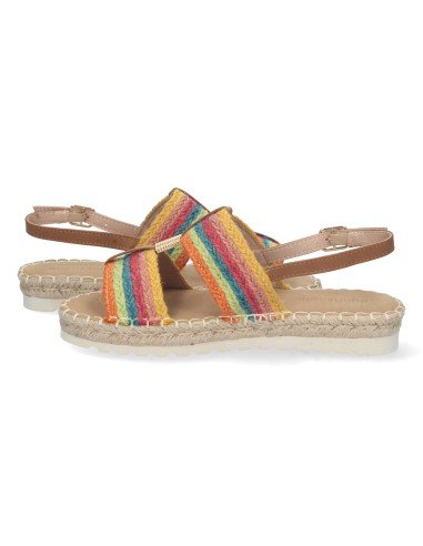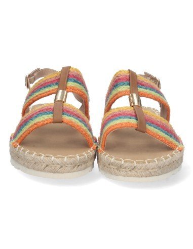 Sandalia Plana para Mujer, Comoda, Forrada de Yute, Doble Pala, Talon Abierto, y Cierre de Hebilla, Primavera Verano 2023