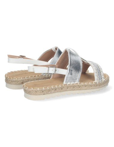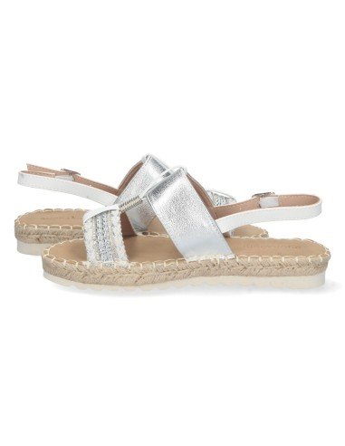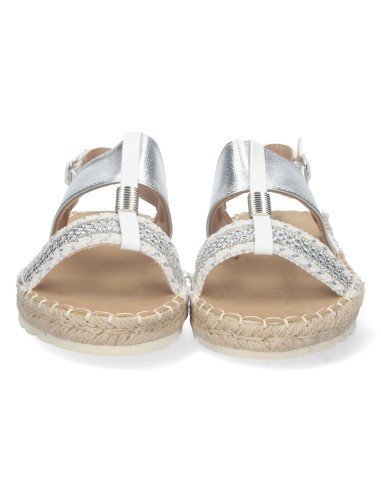 Sandalia Plana para Mujer, Comoda, Forrada de Yute, Doble Pala, Talon Abierto, y Cierre de Hebilla, Primavera Verano 2023