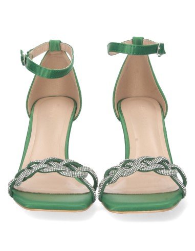 Sandalia de Tacon para Mujer, Comoda, Estilo Ankle Strap, con Pala Brillante, y Cierre de Hebilla, Primavera Verano 2023