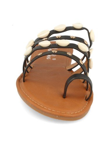 Sandalia Plana de Esclava con Conchas en Pala