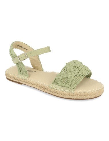 Sandalia de Yute para Mujer, Comodas, con Pala de Rafia Trenzada, y Cierre de Hebilla, Primavera Verano 2021