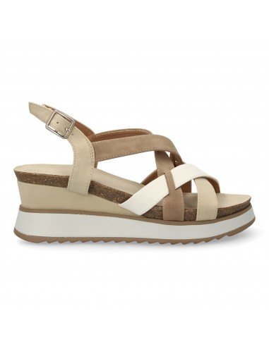 Sandalia de cuña para mujer, comodas y elegantes, diseño moderno con tiras entrelazadas con cierre de hebilla ajustable y planta bio, ideales para primavera-verano.