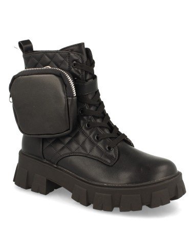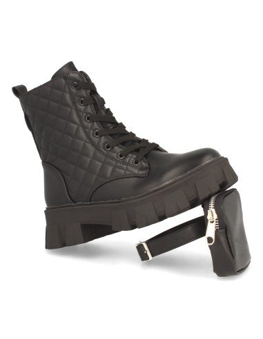 Botin de Plataforma para Mujer, con Suela Dentada, Bolsillo con Cremallera, Acolchado, y Cierre de Cordones, Otoño Invierno 2021