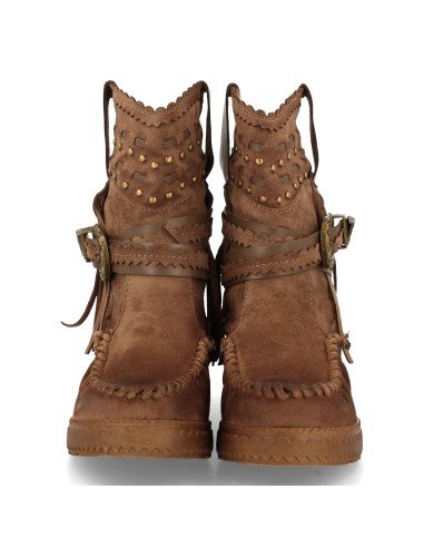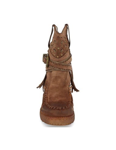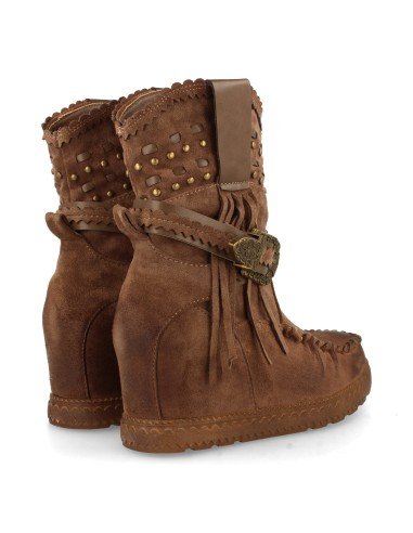 Bota de Estilo Indio, Correas con Hebilla, Flecos en Caña, Cuña Interior, y Cierre de Cremallera, Otoño Invierno 2020