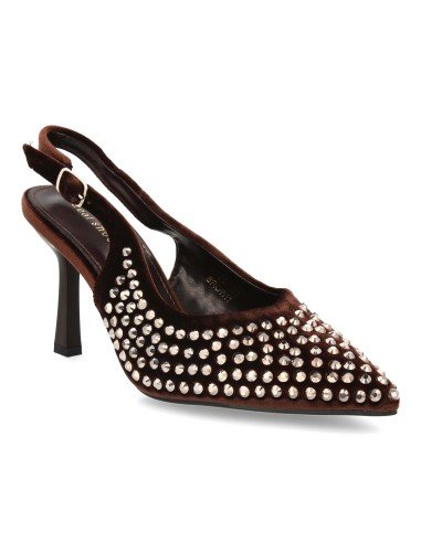 Zapatos de salón elegante con punta fina y pedreria, tacon fino y cierre de hebilla. Ideales para mujer en eventos de la temporada Otoño invierno.