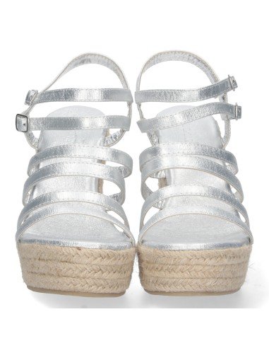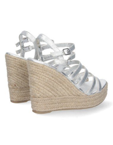 Sandalia de Cuña Alta para Mujer, Comoda, Forrado de Yute, Tiras Finas por el Empeine, y Doble Cierre de Hebilla