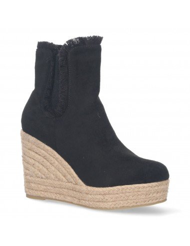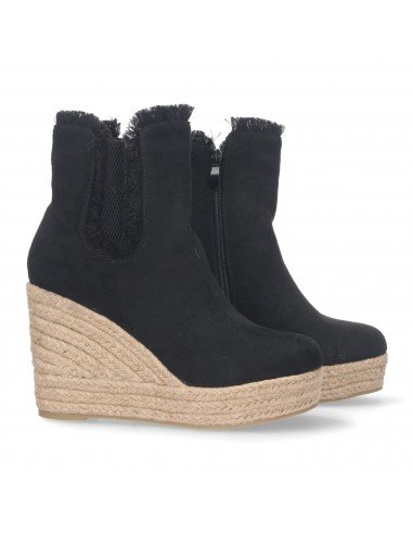 Botin de cuña de yute para mujer, material aterciopelado y elastico, cierre de cremallera.