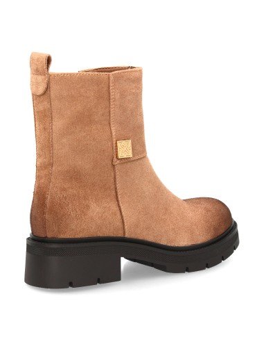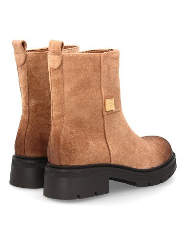 Botín moderno con estampado liso.Incorpora un adorno metálico lateral. Suela robusta con plataforma. Ideal para mujer en temporada Otoño Invierno. Cierre de cremallera