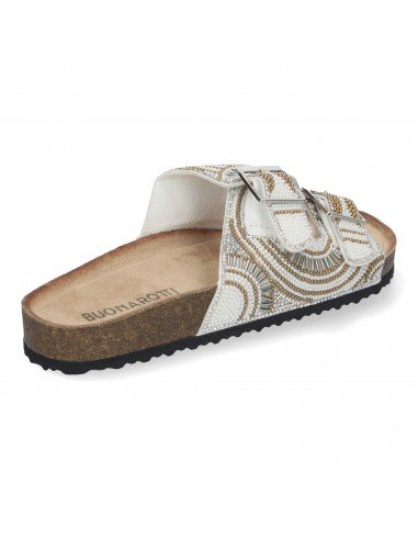 Sandalia Plana de Mujer, Comoda, y Elegante, Diseño Moderno, Estilo Bio, con Strass en la Pala, y Doble Hebilla.