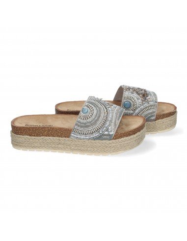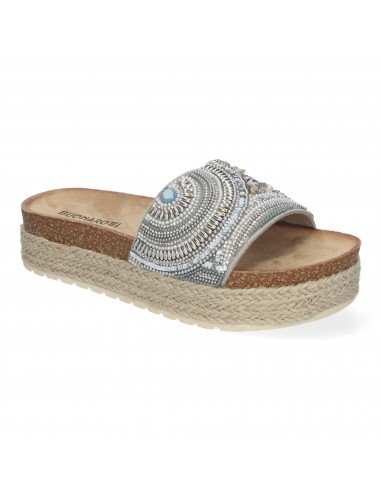Sandalia Plana de Mujer, Comoda y Elegante, Diseño Moderno, Estilo Bio, Forrada de Yute y con Piedras de Strass en la Pala.