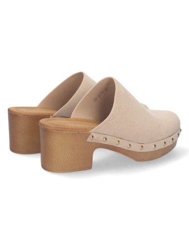 Sandalia de Tacón para Mujer, Comoda, Material de Imitacion a Madera, con Pala Cerrada, Remaches, y Talon Abierto