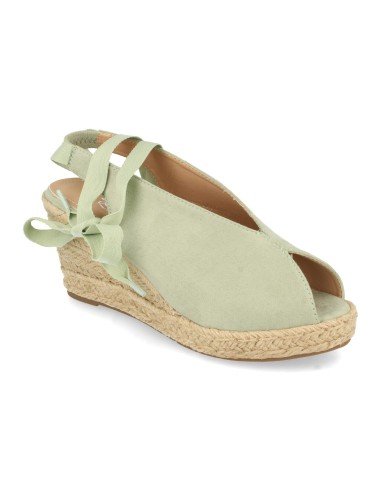 Sandalia de Cuña para Mujer, Forrada de Yute, con Punta y Empeine Abierto, Cierre de Cordones en el Tobillo, Primavera Verano 2021