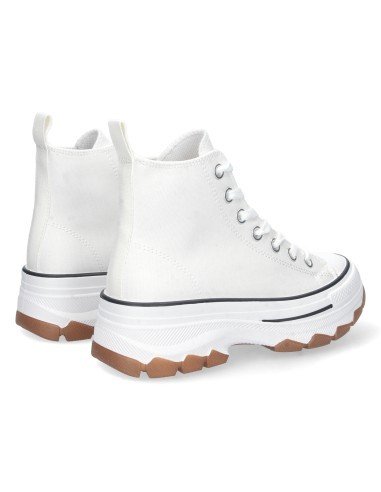 Zapatilla Abotinada de Plataforma para Mujer, Comoda, Estilo Bamba, Material de Lona, y Cierre de Cordones
