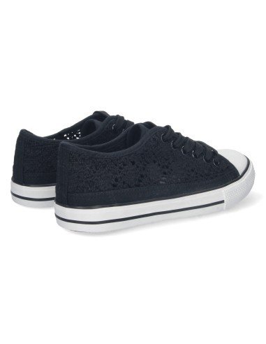 Zapatilla Plana para Mujer, Comoda, Estilo Bamba, con Material Bordado y Calado, Transpirable, y Cierre de Cordones