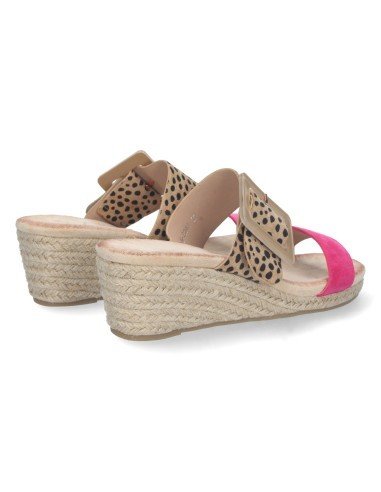 Sandalia de Cuña para Mujer, Comoda, Forrada de Yute, con Estampado de Leopardo, Hebilla, y Talon Abierto