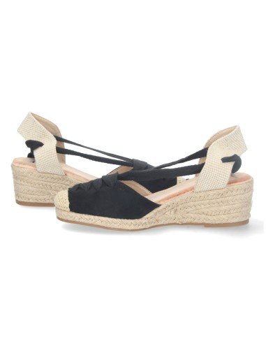 Sandalia de Cuña para Mujer, Forrada de Yute, con Pala Cerrada, Rafia, y Cierre de Cordones, Primavera Verano 2023