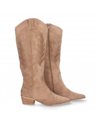 Bota de tacon para mujer comodas, de material aterciopelado, con estampado en la caña y en la pala y cierre de cremallera.
