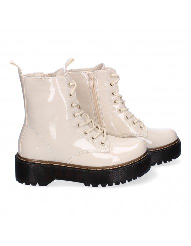 Botín de Mujer de Doble Suela Comodos estilo Charol con Plataforma y Cierre de Cremallera y Cordoneras.