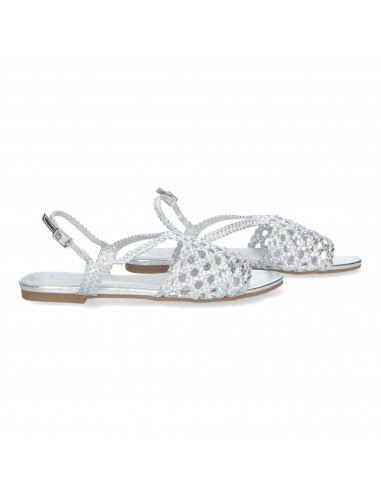 Sandalias Planas para Mujer, comodas con Pala abierta trenzada y fina, cierre de hebilla.