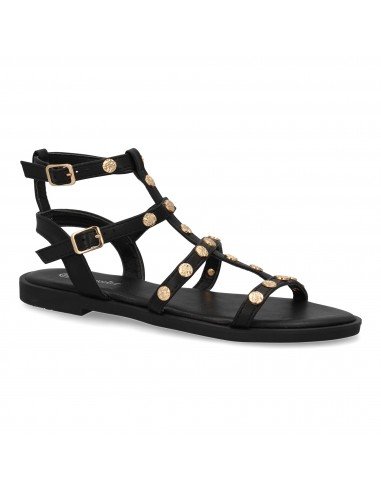 Sandalias planas de mujer, comodas y elegantes, diseño moderno con tachuelas, con cierre de hebilla ideales para primavera-verano.