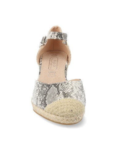 Sandalia de cuña en yute, con pulsera y cierre de hebilla en el tobillo. Planta de piel. Altura: 6 cm.
