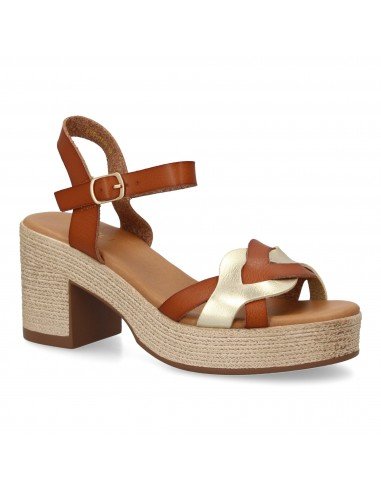 Sandalia de tacon para mujer diseño moderno elegante y comodo con tiras cruzadas en la pala y cierre de hebilla ideales para primavera verano.