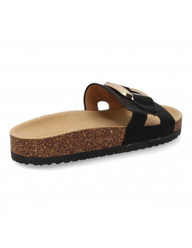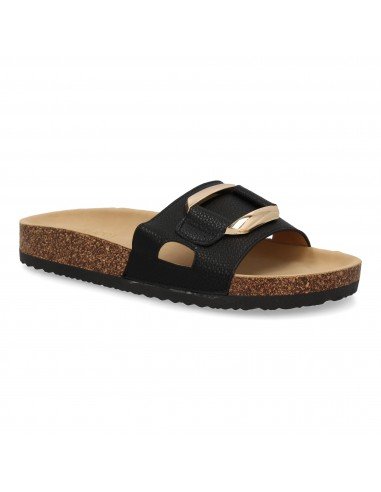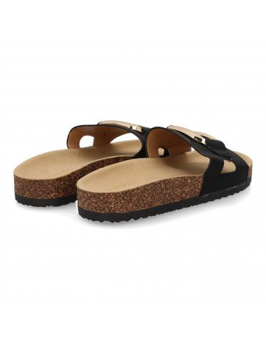 Sandalia plana de mujer, comoda y elegante, diseño moderno con material bio, detalle metalico en la pala, ideales para primavera verano.