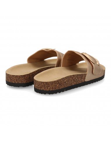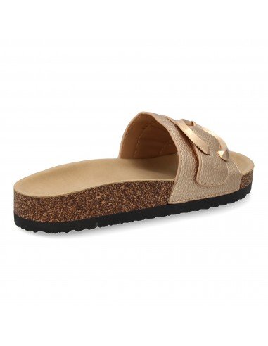 Sandalia plana de mujer, comoda y elegante, diseño moderno con material bio, detalle metalico en la pala, ideales para primavera verano.