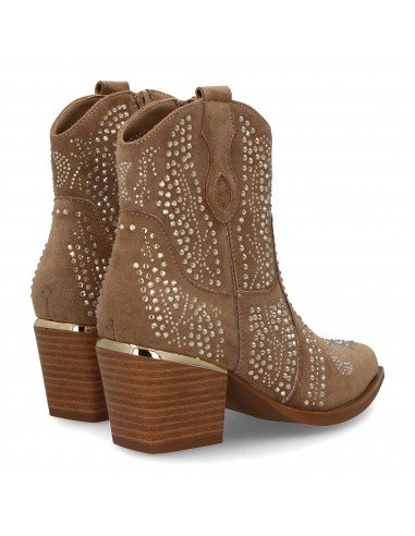 Bota de mujer con estilo vaquero, detalles brillantes y cierre cómodo. Forrado de tachuelas brillantes, tacón cubano.