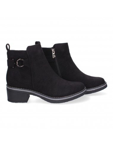 Botines de Tacón para Mujer, Comodos y Elegantes, Adorno Metálico, Punta Redonda y Cierre de Cremallera.