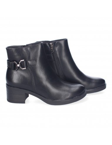 Botines de Tacón para Mujer, Comodos y Eleganes, Adorno Metalico en la Caña, Punta Redonda y Cierre de Cremallera Lateral.