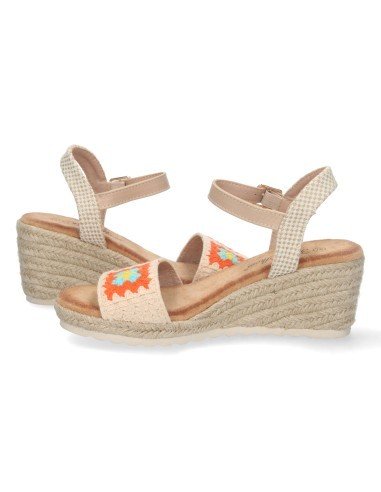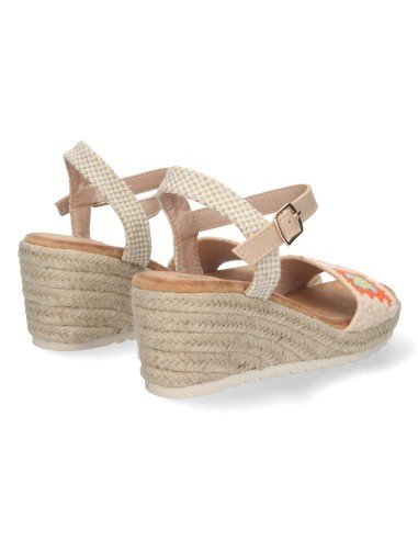 Sandalia de Cuña para Mujer, Comoda, Forrada de Yute, Pala Simple con Bordado, y Cierre de Hebilla, Primavera Verano 2023