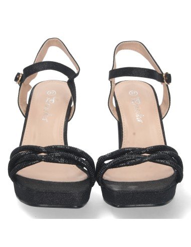 Sandalia de Tacon para Mujer, Comoda, de Material Brillante, con Palas Cruzadas, y Cierre de Hebilla, Otoño Invierno 2022