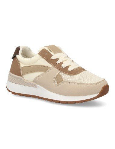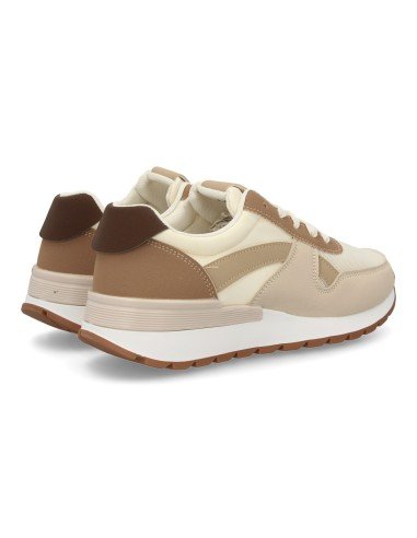 Zapatillas deportivas estilo urbano con diseño multicapas y malla transpirable en el empeine. Suela ligera con amortiguación, Cierre de cordones. Ideal para mujer, uso diario.