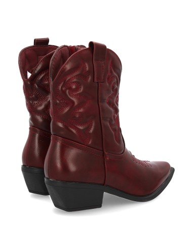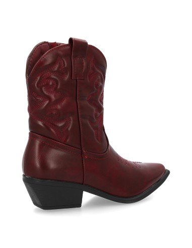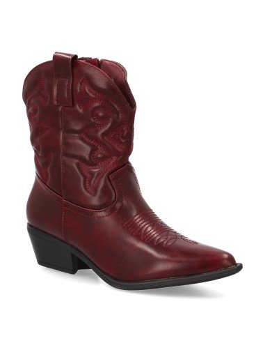 Botín estilo cowboy con bordados en la caña, tacón ancho y punta fina. Estampado liso, Diseño moderno con cierre de cremallera, ideal para mujer en la temporada Otoño invierno.