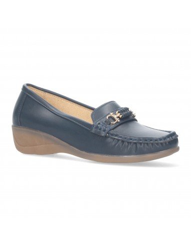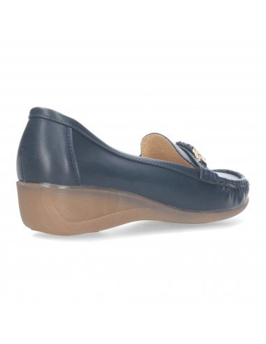 Mocasin con cuña de mujer, con detalle metalico en la pala.