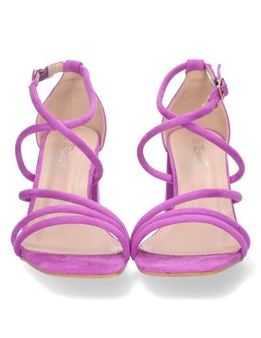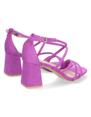 Sandalia de Tacon para Mujer, Comodo, con Tiras Finas Cruzadas, Talon Cerrado, y Cierre de Hebilla