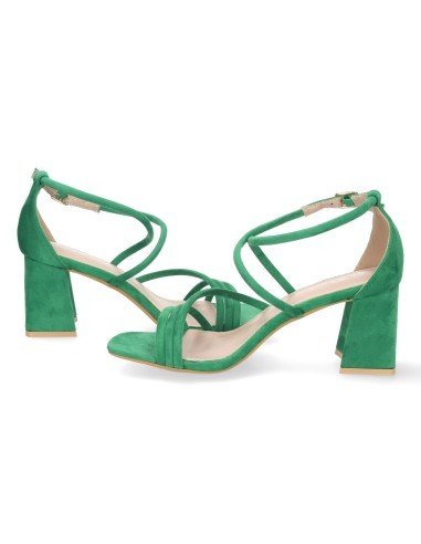 Sandalia de Tacon para Mujer, Comodo, con Tiras Finas Cruzadas, Talon Cerrado, y Cierre de Hebilla