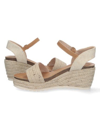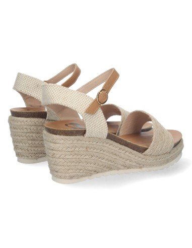 Sandalia de Cuña para Mujer, Comoda, con Planta de Bio, Forrada de Yute, Talon Abierto, y Cierre de Hebilla